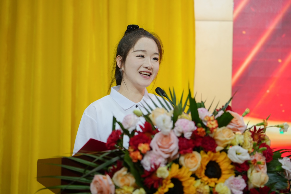 國(guó)家獎(jiǎng)學(xué)金獲得者、中共預(yù)備黨員、學(xué)校十大優(yōu)秀學(xué)生、集成電路學(xué)院龐夢(mèng)夢(mèng)同學(xué)作為畢業(yè)生代表發(fā)言,深情回顧了在校求學(xué)的點(diǎn)滴成長(zhǎng),表達(dá)了對(duì)母校培育之恩的感激和對(duì)未來(lái)的美好憧憬。