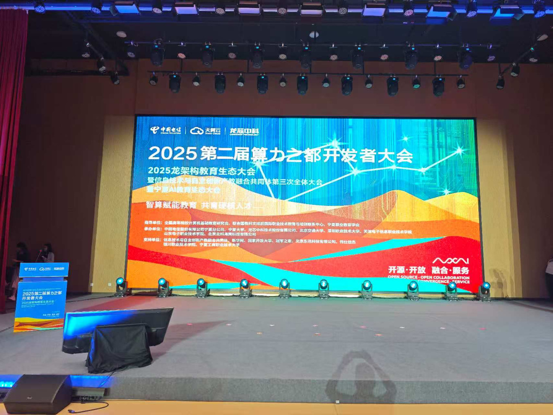 為深入貫徹落實(shí)國(guó)家“數(shù)字中國(guó)”戰(zhàn)略及人工智能產(chǎn)業(yè)規(guī)劃,促進(jìn)信創(chuàng)產(chǎn)業(yè)高質(zhì)量發(fā)展,增強(qiáng)自主創(chuàng)新能力,提高人才培養(yǎng)質(zhì)量,8月7日至11日,2025龍架構(gòu)教育生態(tài)大會(huì)暨信息技術(shù)與自主創(chuàng)新產(chǎn)教融合共同體第三次全體大會(huì),在寧夏銀川成功舉辦,我校代表參加會(huì)議。會(huì)上,我校當(dāng)選“信息技術(shù)與自主創(chuàng)新產(chǎn)教融合共同體”理事長(zhǎng)單位,并參加“助力行動(dòng)”公益項(xiàng)目捐贈(zèng)儀式。