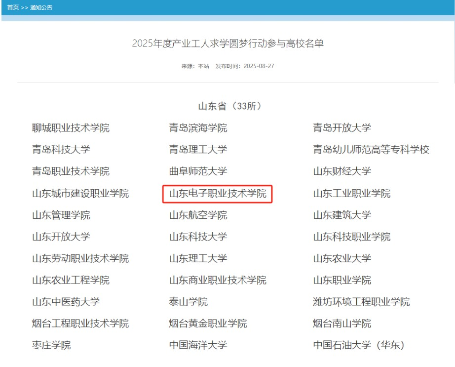 8月27日,教育部職業(yè)教育與成人教育司通過全國高等繼續(xù)教育信息管理系統(tǒng)公布了“2025年度產業(yè)工人求學圓夢行動參與高校名單”,我校成功入選。