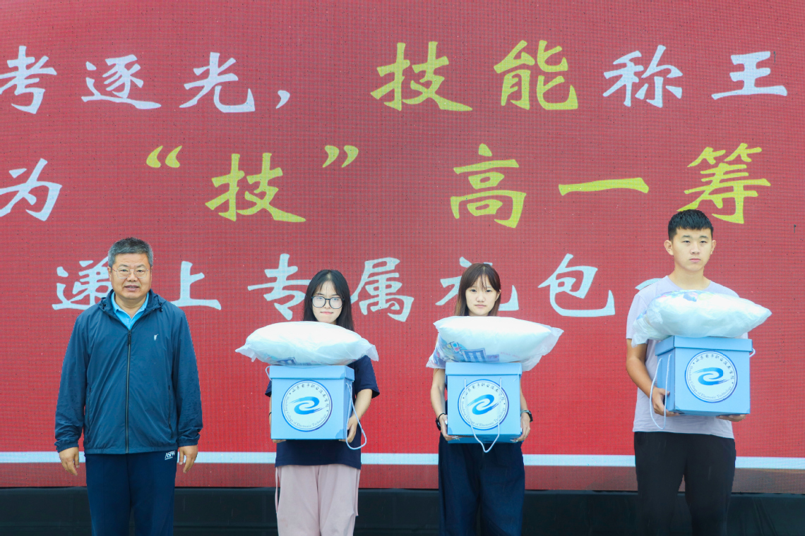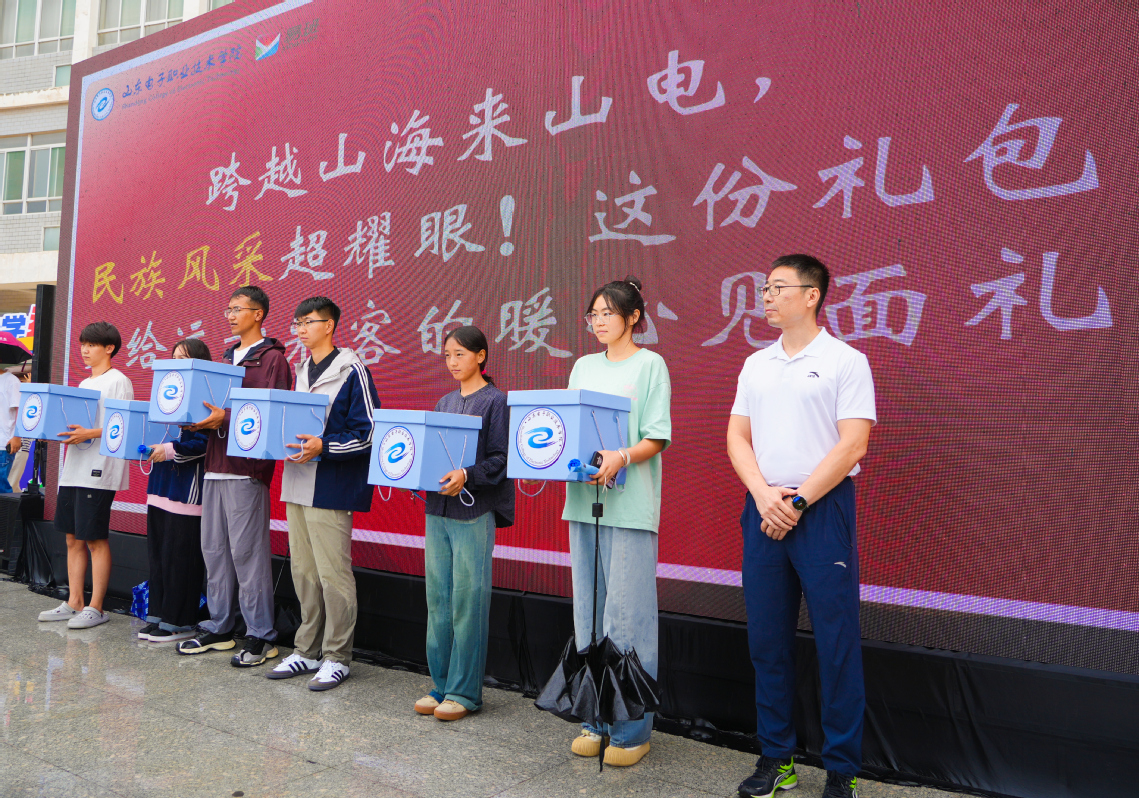 在迎新現(xiàn)場(chǎng),學(xué)校領(lǐng)導(dǎo)為新生錄取分?jǐn)?shù)Top10的同學(xué)、2025年普通高考(春季)技能拔尖人才、省外少數(shù)民族學(xué)生等送上獎(jiǎng)品大禮包和免費(fèi)校服,讓同學(xué)們在入校伊始便感受到山電滿滿關(guān)愛。