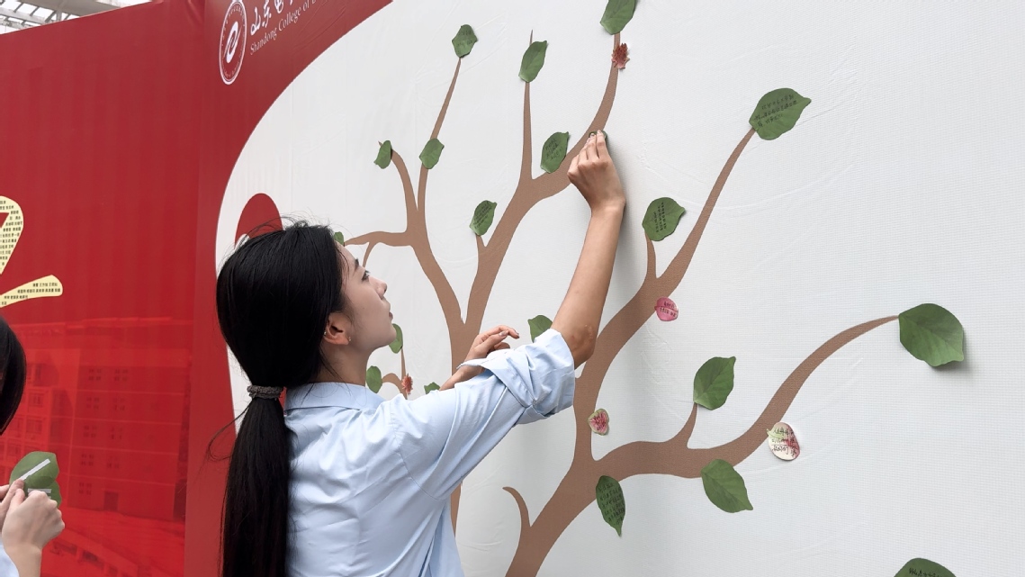 商務(wù)管理系讓迎新充滿新意與暖意,新同學(xué)們把自己將在大學(xué)期間實(shí)現(xiàn)的目標(biāo)制作成“樹葉心愿”,待畢業(yè)時(shí)重拾初心;“數(shù)聚新星,商啟未來”主題簽名墻前,新生與家長(zhǎng)共同留名。