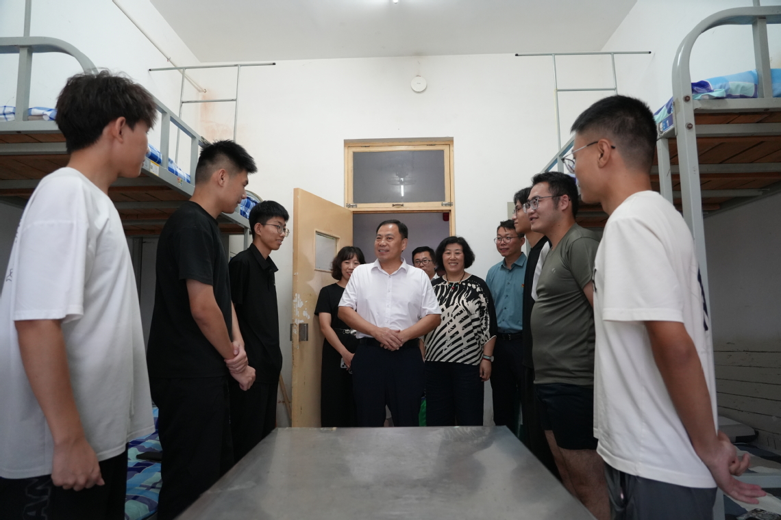 在學(xué)生宿舍,張建臣與新生同學(xué)們聊家常,詢問大家生活習(xí)慣以及入校后的適應(yīng)情況,鼓勵(lì)他們盡快適應(yīng)集體生活,要在山電這個(gè)大家庭里互幫互助、共同進(jìn)步。