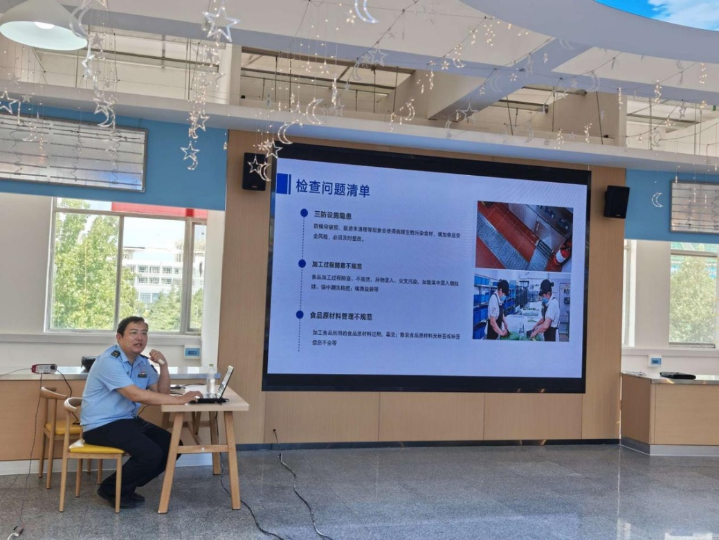 邢介帥通過典型案例分析,明確提出“六大核心防線”建設要求:嚴格把控原料準入、規(guī)范加工操作流程、強化人員健康管理、落實食品留樣制度、完善應急處置機制以及自覺接受社會監(jiān)督。科室工作人員顧鈞結合校園餐飲實際,系統(tǒng)講解了原料采購溯源、加工流程規(guī)范、餐具消毒標準等關鍵操作環(huán)節(jié)。參訓人員一致認為,培訓內(nèi)容緊密結合實際,既有政策解讀,又有實操指導,對增強崗位責任意識、規(guī)范日常操作流程具有重要的指導意義。