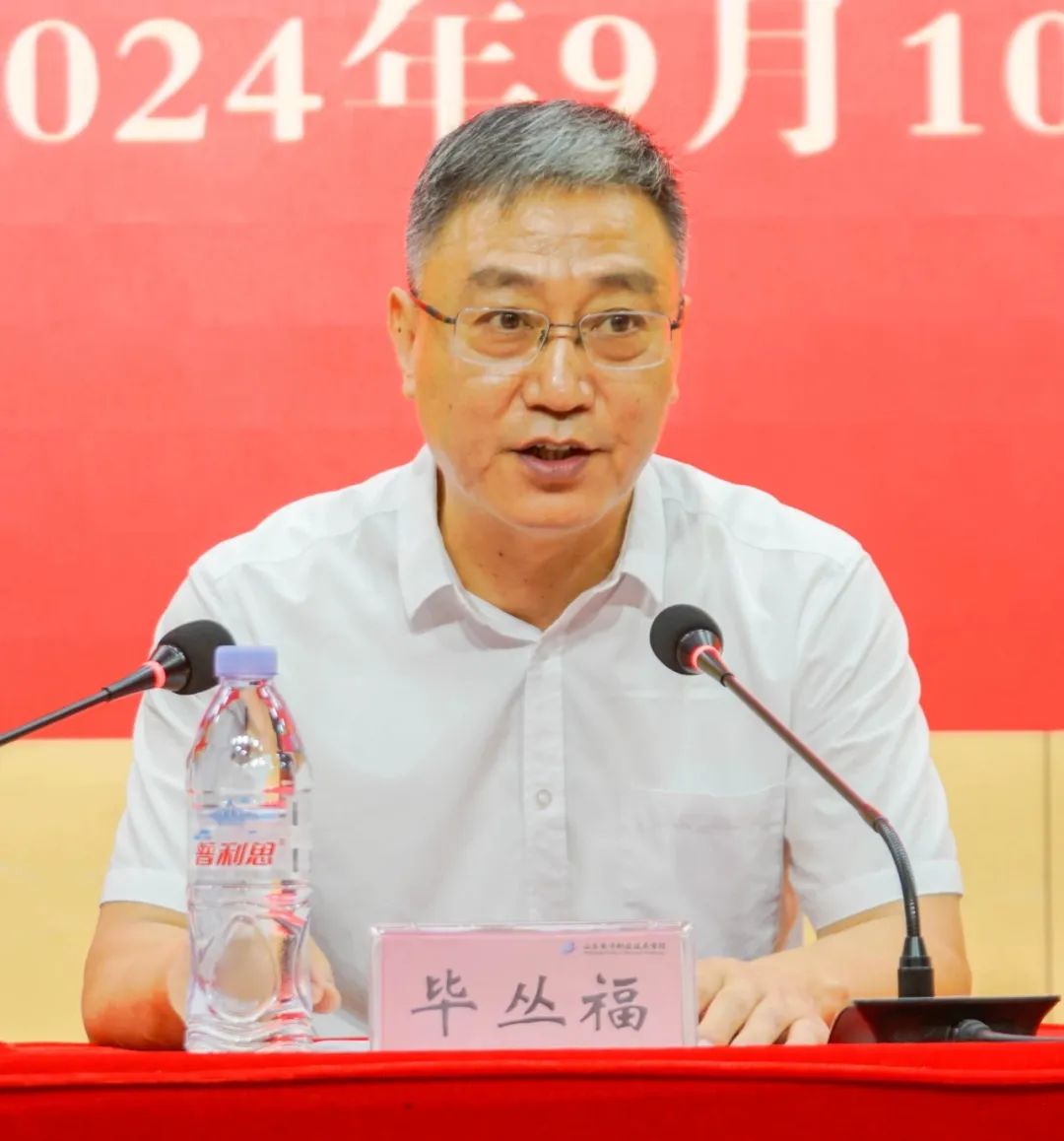 上午9時,大會在莊嚴的國歌聲中拉開帷幕。大會圍繞主題“大力弘揚教育家精神,加快建設教育強國”,對2023年度獲校級及以上榮譽的優(yōu)秀個人和先進集體進行表彰。學校領導為獲獎代表頒獎,與會教職工向獲得表彰的優(yōu)秀集體與個人送上熱烈的掌聲和誠摯的祝賀。 衣襟染霜華,青絲成白發(fā)。大會特別舉行“光榮從教三十年”表彰儀式,學校領導為教師代表頒發(fā)榮譽證書,感謝他們將最好的年華奉獻給了黨和國家的教育事業(yè)。 山東省優(yōu)秀教師稱號獲得者沈潔老師作為獲獎代表發(fā)言,深情回顧了二十年教學經(jīng)歷的悲歡喜樂,她表示將堅守立德樹人初心,繼續(xù)助力學生成才成長。 畢叢福指出,黨的十八大以來,以習近平同志為核心的黨中央高度重視教師思想政治工作和師德師風建設,習近平總書記對廣大教師提出了“四有”好老師、“四個引路人”“四個相統(tǒng)一”的殷切希望,深刻闡釋了中國特有的教育家精神。 畢叢福指出,過去的一年,全校教職工在學校黨委的堅強領導下,勠力同心、勇毅前行,不斷深化教育教學改革,優(yōu)化擴大辦學規(guī)模、持續(xù)改善辦學條件、穩(wěn)步提升核心辦學能力,推動各方面工作努力實現(xiàn)全方位、深層次、突破性蝶變,學校大闊步邁進高質(zhì)量發(fā)展新階段。 畢叢福強調(diào),全體教職員工要堅定理想,永葆初心,堅持不懈用習近平新時代中國特色社會主義思想凝心鑄魂,持續(xù)抓好黨史、新中國史、改革開放史、社會主義發(fā)展史、中華民族發(fā)展史學習教育。要教育引導廣大學生堅定理想信念,樹立遠大理想,立志報效祖國。要涵養(yǎng)師德,潛心育人,自覺踐行教育家精神。要模范遵守憲法和法律法規(guī),依法履行教師職責,堅決抵制損害黨中央權威、國家利益的言行。要模范遵守新時代教師職業(yè)行為準則,自覺捍衛(wèi)教師職業(yè)尊嚴,模范遵守社會公德,堅決抵制學術不端,營造風清氣正的學術生態(tài)。要提升本領,創(chuàng)新發(fā)展,將學科能力和學科素養(yǎng)作為教書育人的基礎,不斷提升教學能力。要適應基礎學科、新興學科、交叉學科發(fā)展趨勢,創(chuàng)新教育教學方法,不斷提高教學質(zhì)量和教書育人本領。 張建臣在主持講話中表示,新時代飽含新期待,新征程呼喚新作為,希望廣大教職員工牢記為黨育人、為國育才的初心使命,在各自崗位上不斷實現(xiàn)新突破、創(chuàng)造新業(yè)績,努力實現(xiàn)強基固本提內(nèi)涵,以質(zhì)圖強促發(fā)展。
